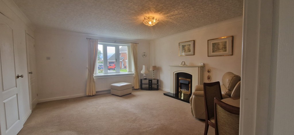 LOUNGE 19' 5" x 14' 2" (5.92m x 4.32m) Double glazed bay window, central heating radiator, marble effect fireplace with electric fire, coving to ceiling.