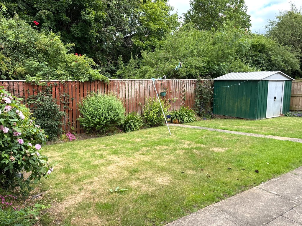 EXTERNALLY Enclosed rear garden with lawn mature shrubs and shed, with access to both side of the house. Double driveway parking for cars.