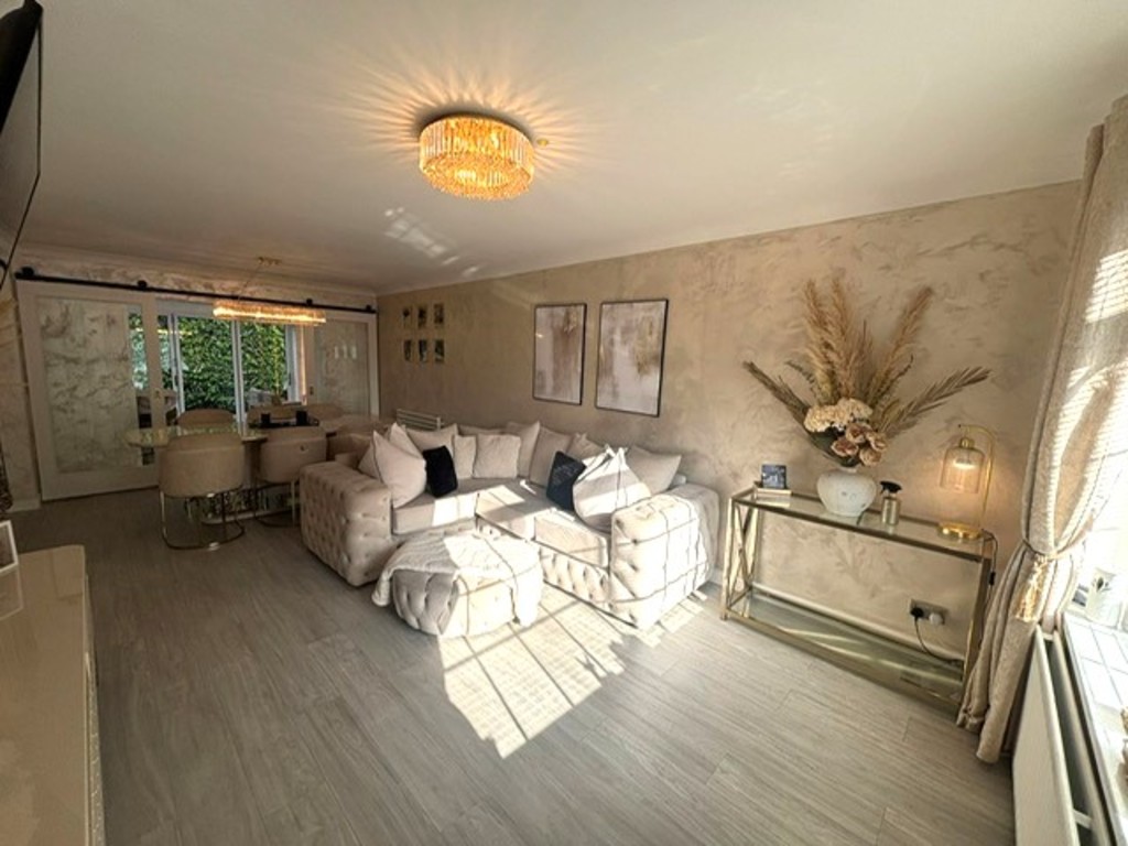 LOUNGE 11' 4" x 21' 5" (3.45m x 6.53m) Double glazed window, central heating radiator, laminate wood flooring, TV point. Coving to ceiling.