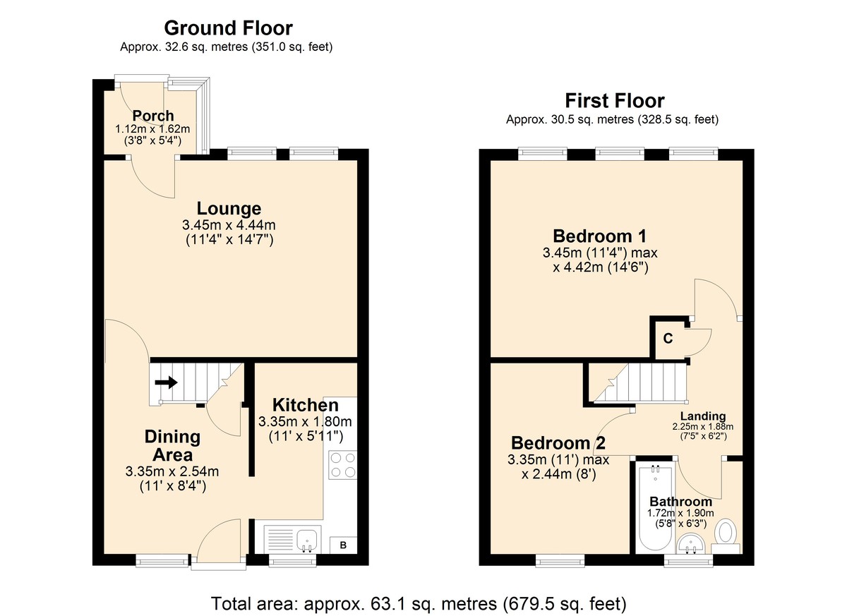 LOUNGE 14' 5" x 11' 5" (4.39m x 3.48m) Double glazed window, TV point, double sockets.